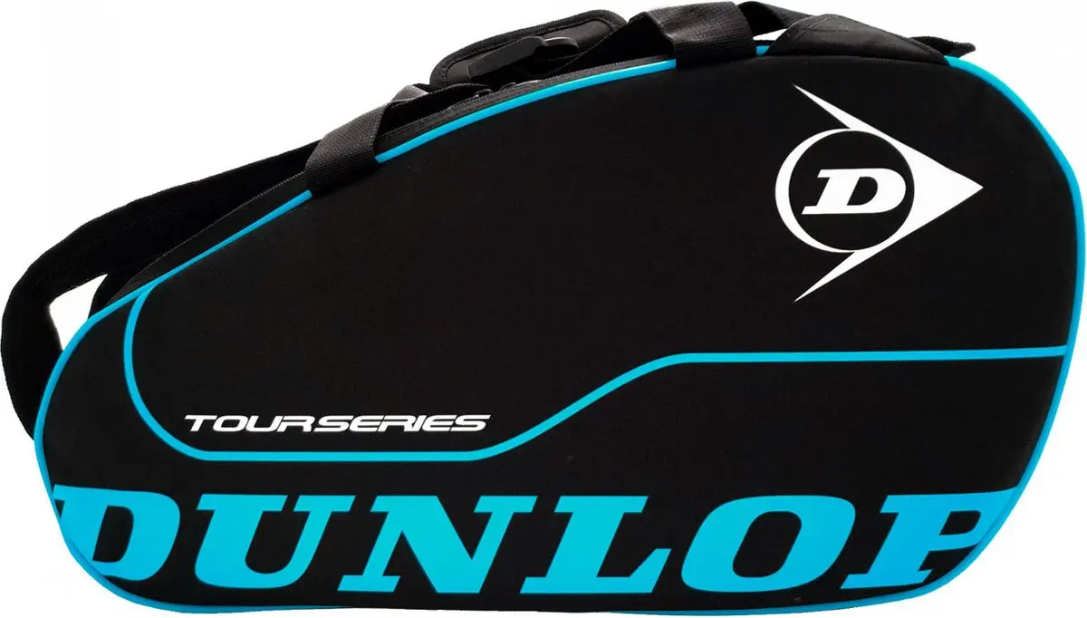 Nieuwe Dunlop Tour Intro II padel rackettas met een medium formaat. Het heeft een vak voor de rackets, een ander groter centraal vak voor kleding en accessoires.