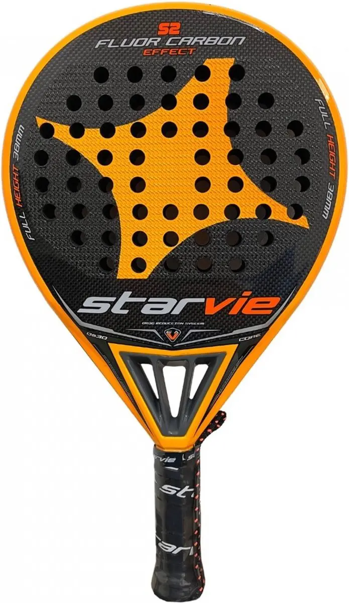 Starvie S2 Orange Carbon Effect Padelracket Ervaar het beste comfort in belangrijke wedstrijden met dit Starvie S2 Orange Carbon Effect racket dat is bedoeld voor een gevorderde of professionele speler die op zoek is naar een zeer veelzijdig racket met extra kracht, alles samen met een uitstekend ontwerp en duurzaamheid. Het is een blad gemaakt van koolstof dat het blad stijfheid geeft.